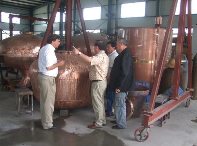5000L夏朗德式蒸餾機(jī)組安裝現(xiàn)場(chǎng)